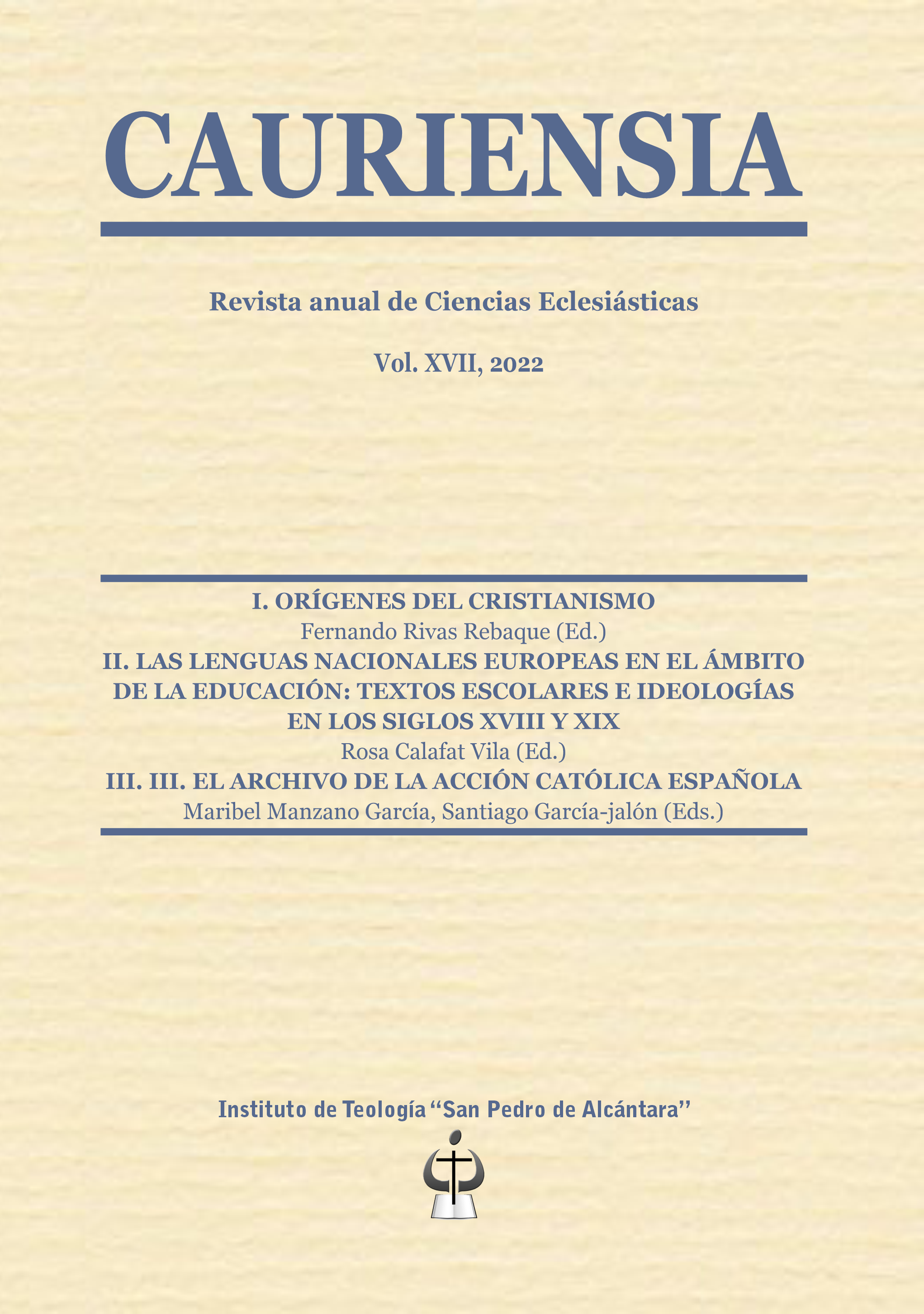 Cauriensia Cauriensia es una revista anual dedicada a estudios e investigaciones en Ciencias Eclesiásticas, abarcando áreas como historia, filosofía, teología, pedagogía y sociología. Publicada por el Instituto Teológico "San Pedro de Alcántara", integra temas universales y aspectos religiosos de la región extremeña. -